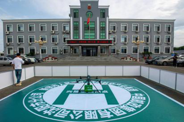 7月24日上午,新民市興隆堡鎮(zhèn)政府廣場上,“航產(chǎn)二號(hào)”無人機(jī)搭載著報(bào)紙、信件和小型包裹騰空而起。
