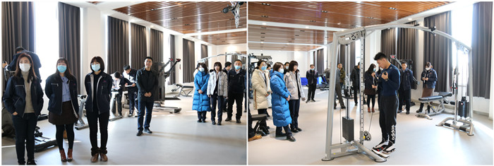 在一樓健身房內(nèi),教練向大家逐一介紹了各類常用健身器材及使用方法,并就員工提出的健身運動問題進行了一一解答。通過教練的標準示范,大家積極參與、親身體檢,相互交流健身鍛煉心得。