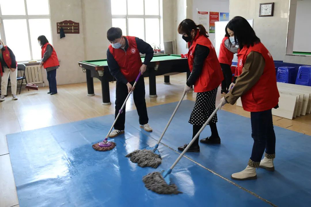 此次活動(dòng)圍繞清掃社區(qū)居民活動(dòng)室展開。下午1點(diǎn)30分,航空集團(tuán)25名黨員及入黨積極分子準(zhǔn)時(shí)到達(dá)美地社區(qū),大家迅速穿上醒目的志愿者紅馬甲,分工合作起來。活動(dòng)現(xiàn)場,志愿者們積極投入到清掃社區(qū)活動(dòng)室地面、清除衛(wèi)生死角、擦拭公共展板等工作中。此外黨員志愿者們在社區(qū)工作人員的帶領(lǐng)下,搬桌子、掛條幅、擺凳子,圓滿完成美地社區(qū)即將召開黨員大會的前期布置工作。